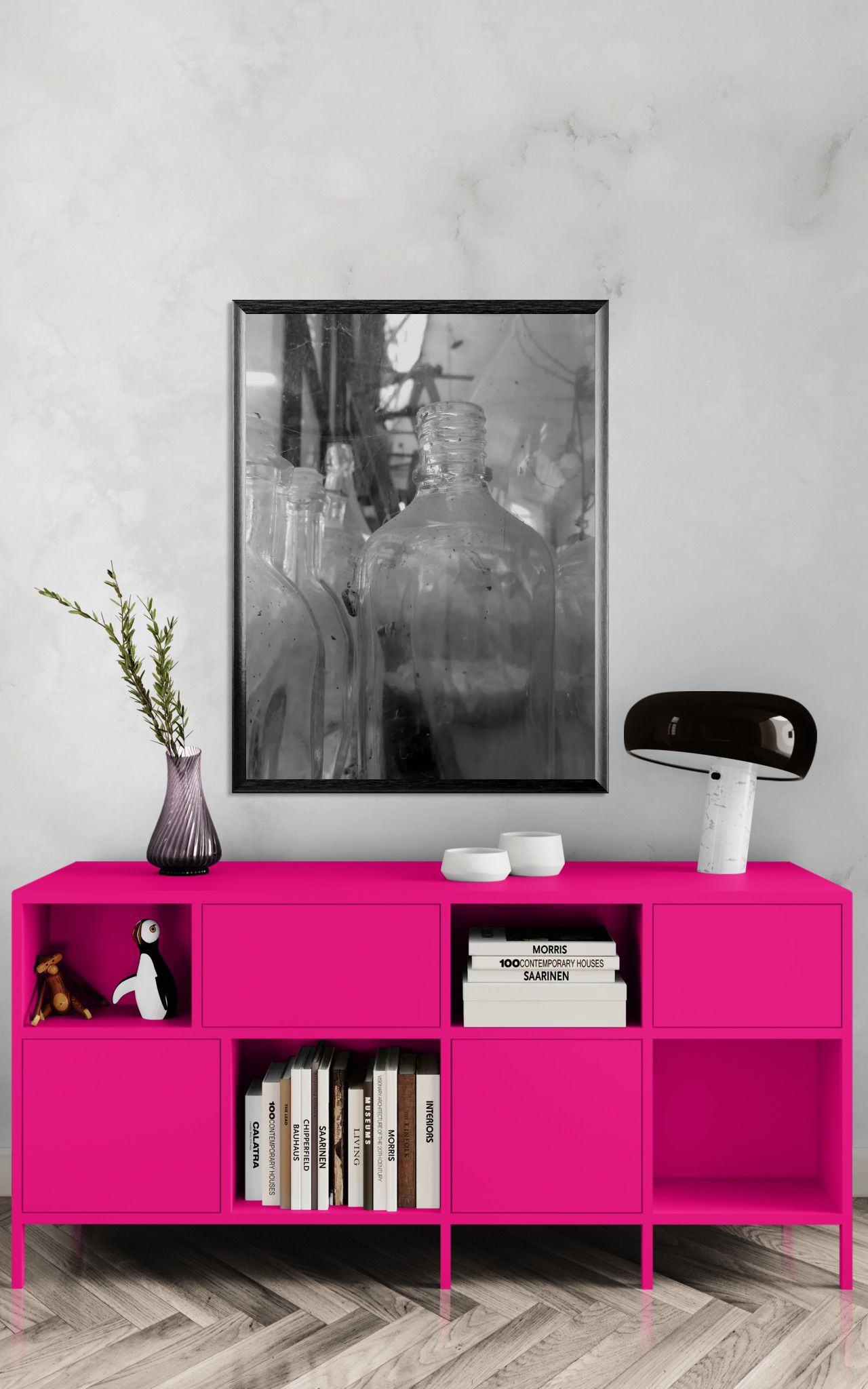 Una escena urbana con alma: esta lámina de edición limitada mezcla botellas y color en una composición que transforma cualquier rincón. Ideal para espacios modernos con un toque artístico.