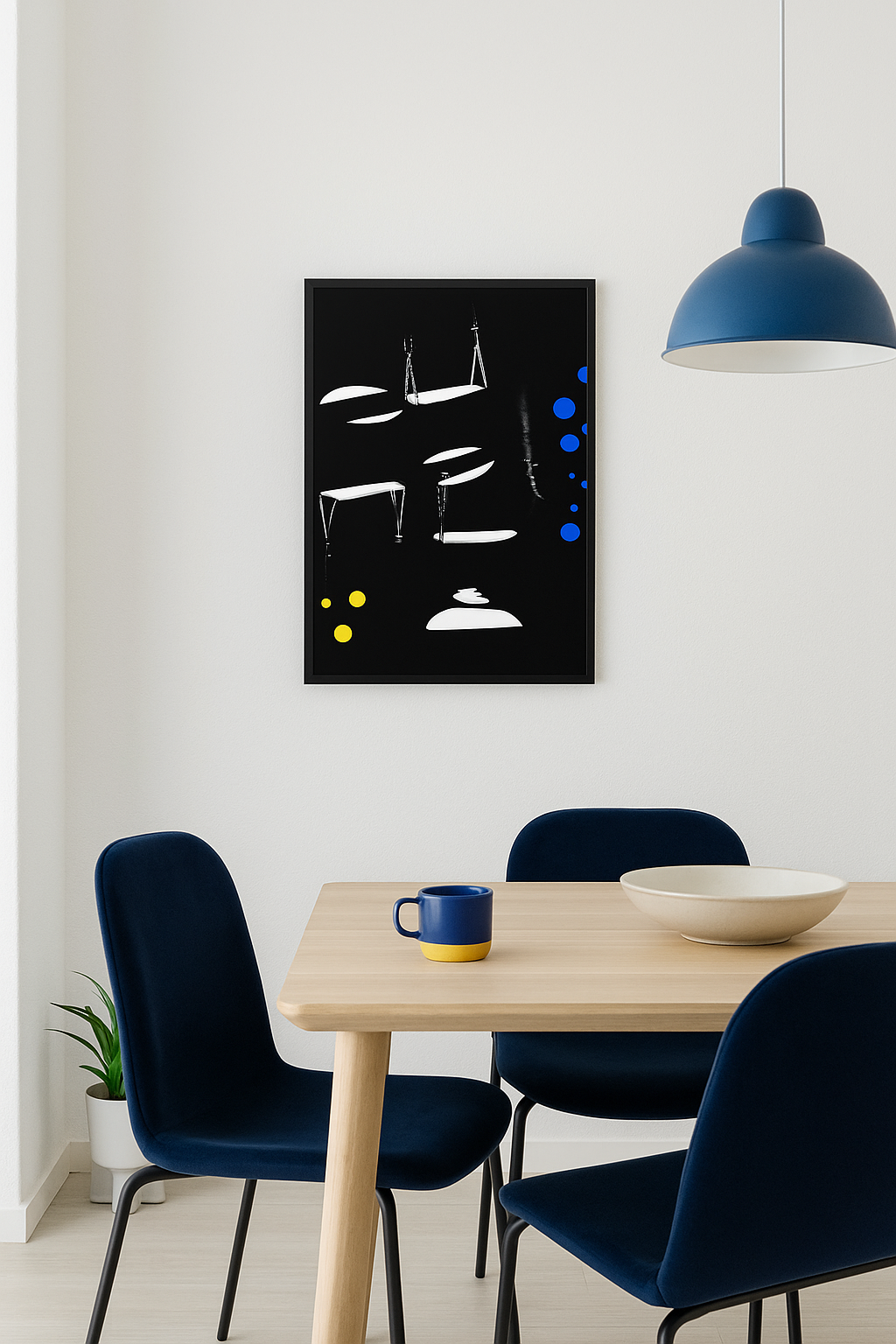 Una obra que evoca la memoria y el movimiento, como si las emociones flotaran en equilibrio entre formas puras y colores esenciales.